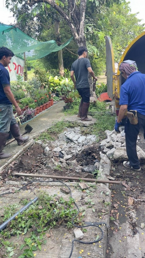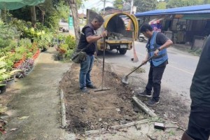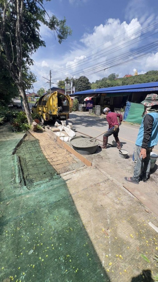 ลงพื้นที่ดูแลการปฎิบัติงานของเจ้าที่กองช่างทำการซ่อมแซมปรับปรุงถนนบริเวณทางเท้าหน้ามัสยิดหมู่ที่ 3 บ้านเชิงดอย