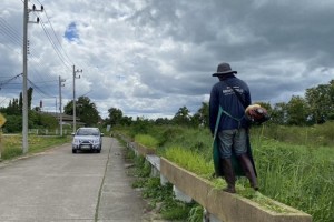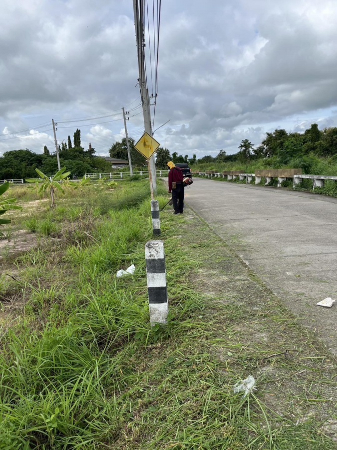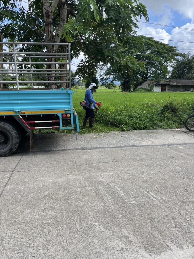 2 .เจ้าหน้าที่กองช่างดำเนินการตัดหญ้าบริเวณไหล่ทางถนนหมู่ที่ 8 บ้านลวงใต้