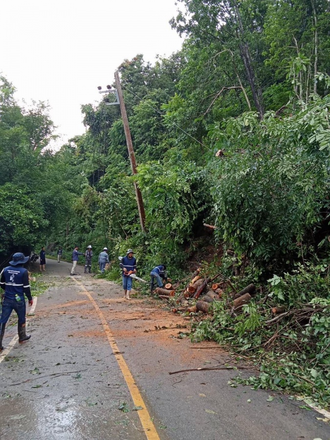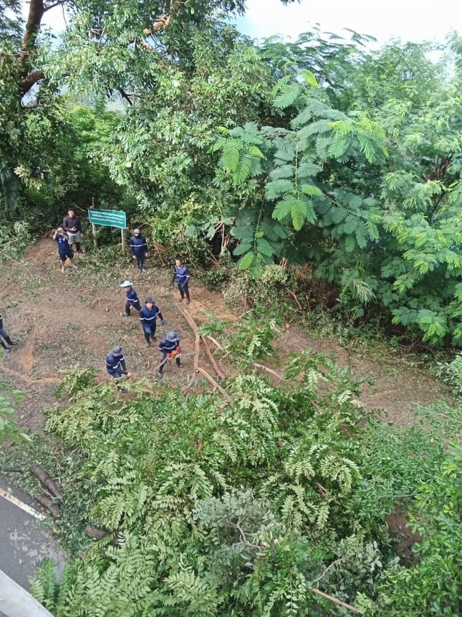 ประสานงานขอให้เจ้าหน้าที่กองช่าง เทศบาลดอยสะเก็ดลงพื้นที่ช่วยเหลือตัดต้นไม้ใหญ่หักโค่นล้มขวางถนนและล้มทับสายไฟแรงสูงบริเวณทางเข้าประมงเขื่อนแม่กวงอุดมธาราโดยมีหน่วยงานร่วมกันบูรณาการด้วยกันดังนี้