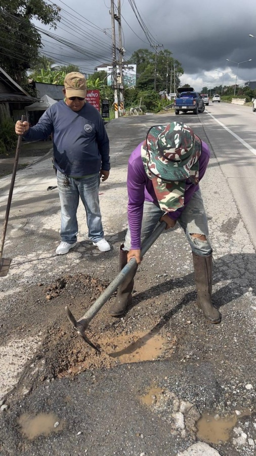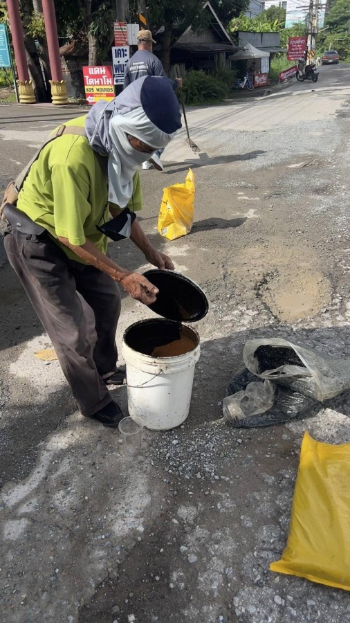 1.เทคอนกรีตแอสฟัลท์ติกที่เป็นหลุมบ่อบริเวณปากทางเข้าบ้านลวงใต้