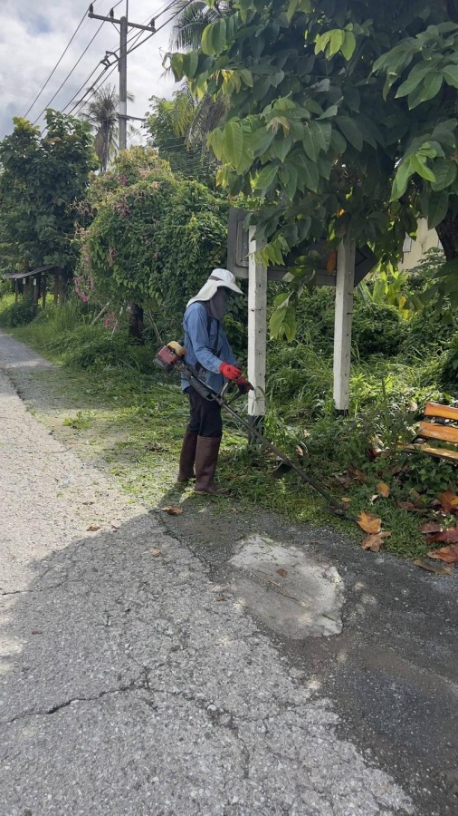 3.เจ้าหน้าที่กองช่างดำเนินการตัดหญ้าบริเวณไหล่ทางถนน