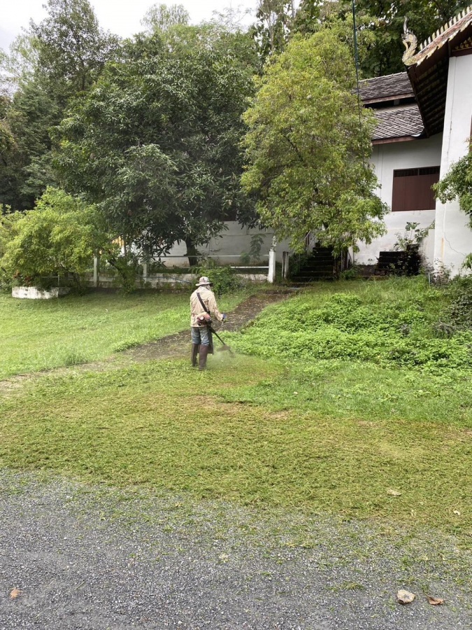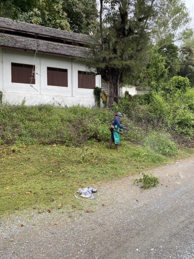 ดำเนินการตัดหญ้า บริเวณศาลาอเนกประสงค์ ม.3 บ้านเชิงดอย เพื่อปรับปรุงภูมิทัศน์ให้สวยงาม และเป็นระเบียบเรียบร้อย