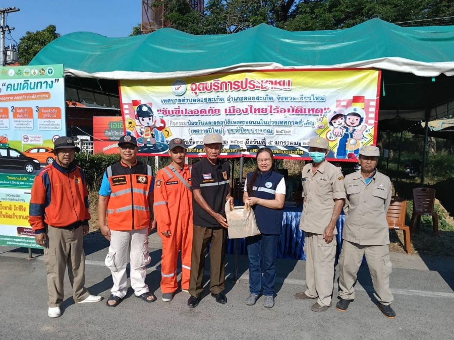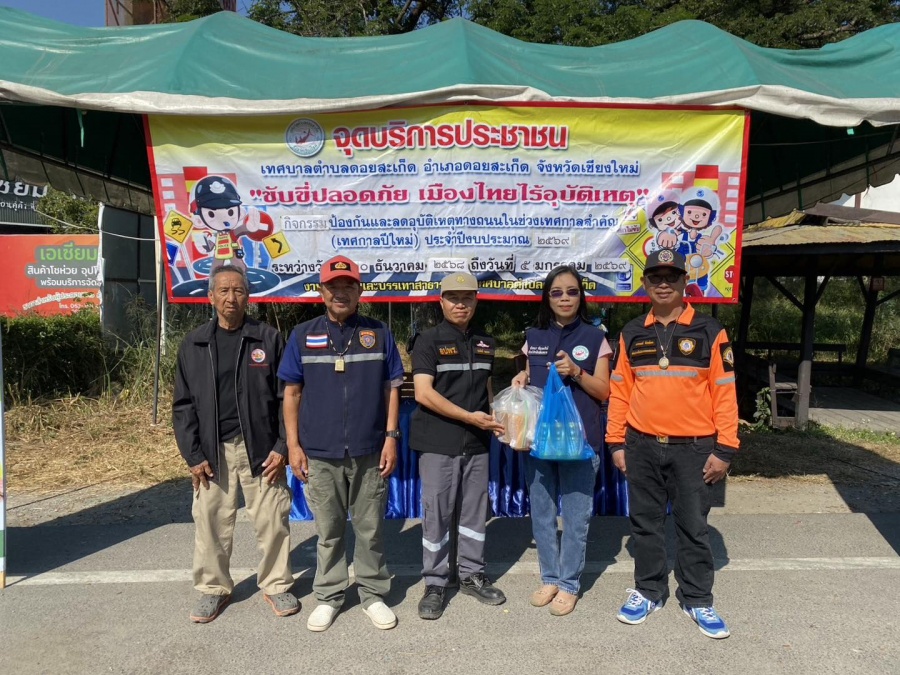 เทศบาลตำบลดอยสะเก็ด ได้ตั้งจุดให้บริการประชาชน ระหว่างวันที่ 30 ธันวาคม 2568 ถึง วันที่ 5 มกราคม 2569 โดยมี ท่านปลัดอาวุโส อำเภอดอยสะเก็ด ปลัดอำเภอดอยสะเก็ดประจำตำบลเชิงดอย นายกเทศมนตรีตำบลดอยสะเก็ด รองนายกเทศมนตรีตำบลดอยสะเก็ด และหัวหน้าส่วนราชการ ตรวจเยี่ยมและให้กำลังใจในการปฏิบัติงานของ อปพร. และเจ้าหน้าที่งานป้องกันและบรรเทาสาธารณภัยเทศบาลตำบลดอยสะเก็ด ณ จุดให้บริการประชาชนเทศบาลตำบลดอยสะเก็ด ถนนสายเชียงใหม่ - เชียงราย