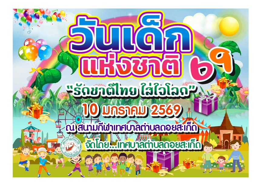 เทศบาลตำบลดอยสะเก็ด ขอเชิญชวนน้องๆ หนูๆ ทั้งหลาย เข้าร่วมกิจกรรมวันเด็กแห่งชาติ ประจำปี 2569