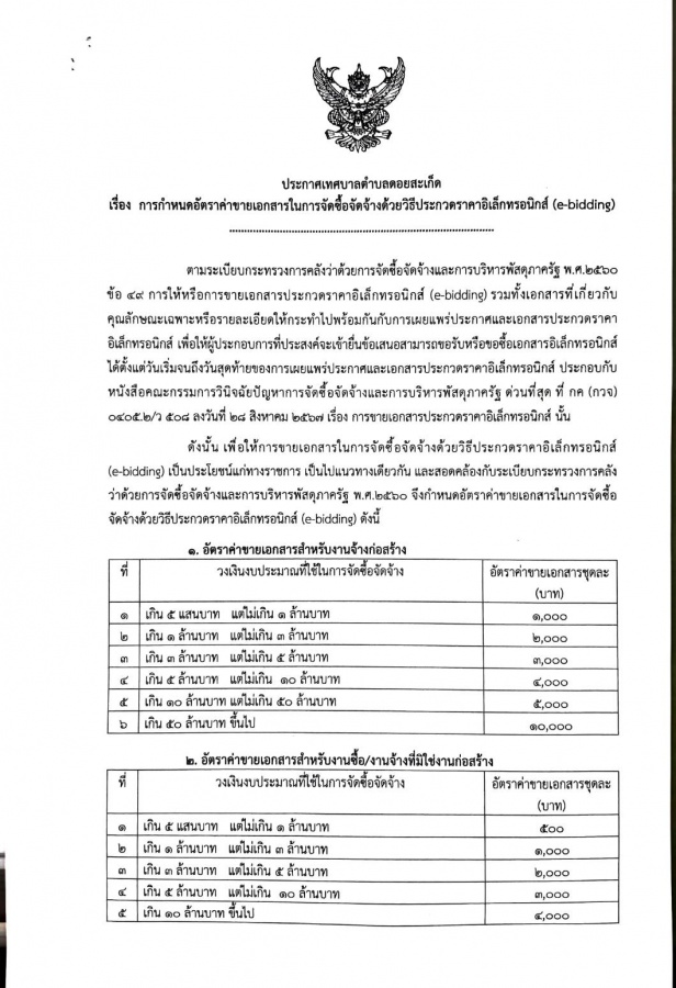 การกำหนดอัตราค่าขายเอกสารในการจัดซื้อจัดจ้างด้วยวิธีประกวดราคาอิเล็กทรอนิกส์ (e-bidding)