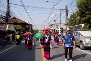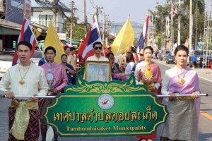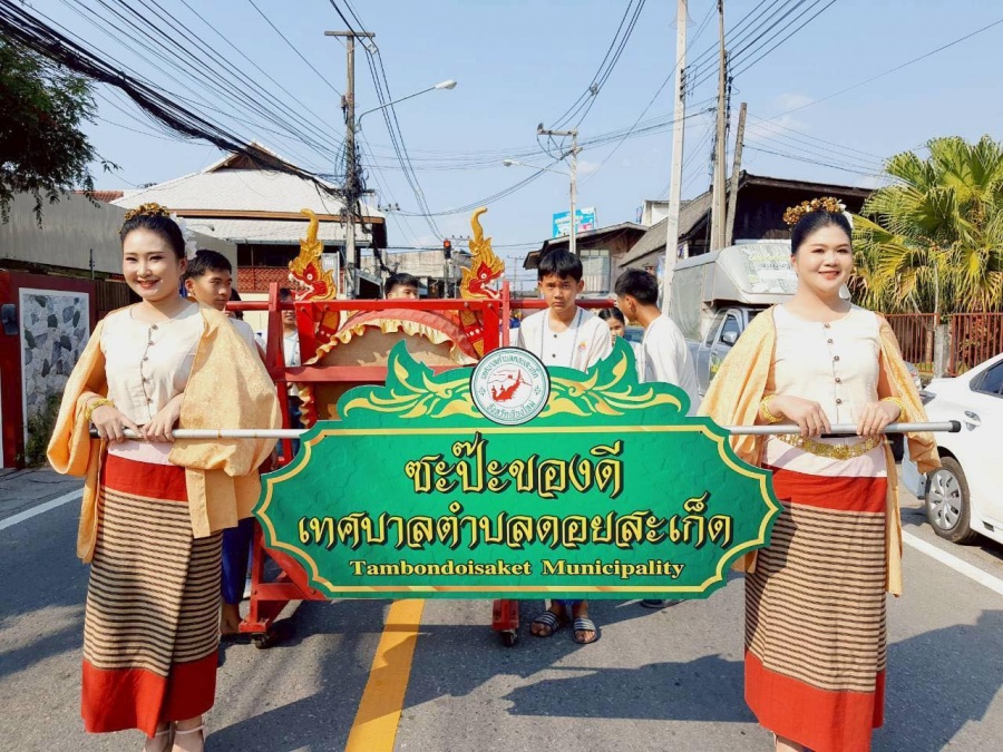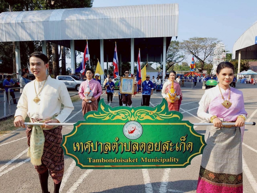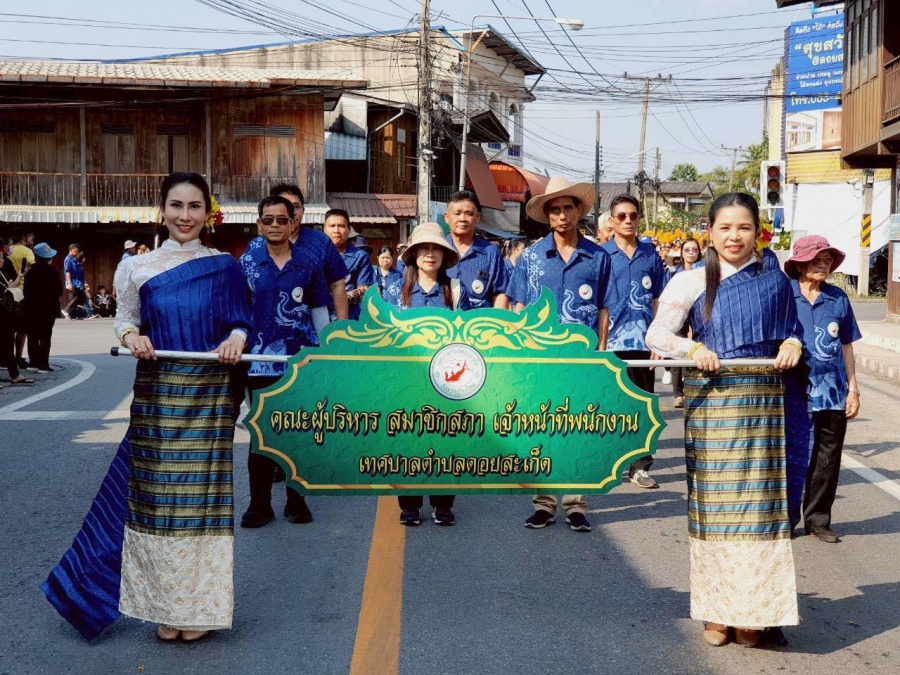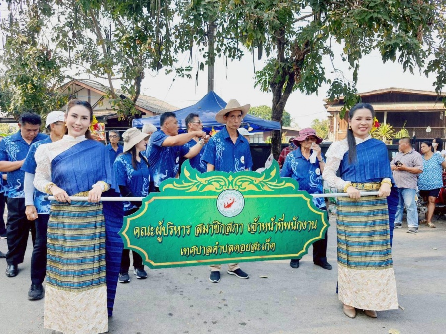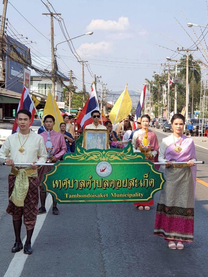 นำโดยคณะผู้บริหาร พร้อมด้วยสมาชิกสภาเทศบาล หัวหน้าส่วนราชการ พนักงานเทศบาล และผู้นำชุมชน เข้าร่วมเดินขบวนในงานซะป๊ะของดีดอยสะเก็ด ครั้งที่ 18 ประจำปี พ.ศ. 2569