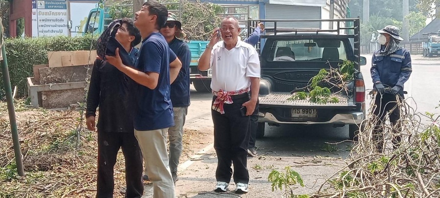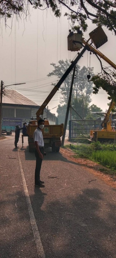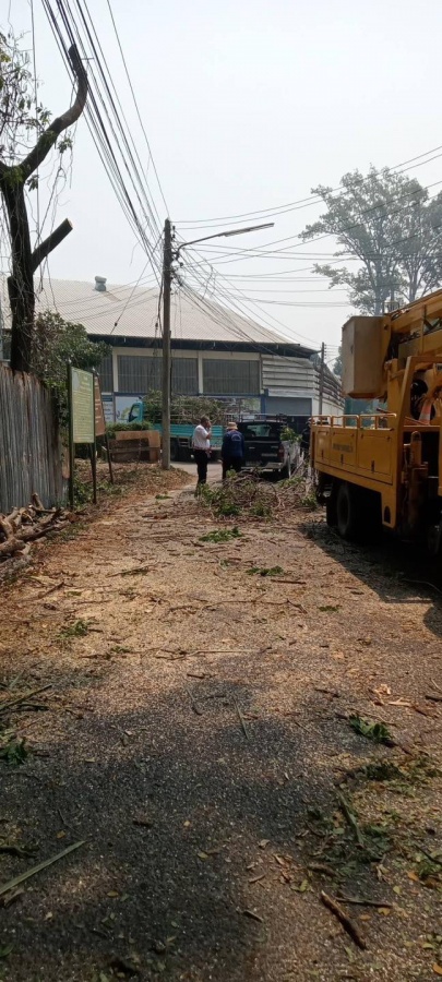 นายพณานนท์ สุนตาอินทร์ นายกเทศมนตรีตำบลดอยสะเก็ด พร้อมด้วยคณะผู้บริหาร กำกับดูแลการดำเนินงานตัดกิ่งไม้บริเวณหน้าโรงงานสุขสวัสดิ์ ค้าไม้ (ร่วมกับงานป้องกัน) และมอบหมายงานให้กองช่าง ดังนี้