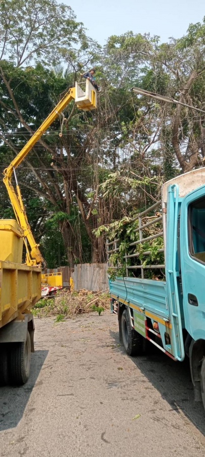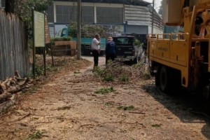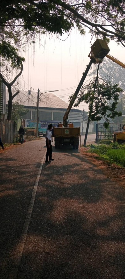 ดำเนินงานตัดกิ่งไม้บริเวณหน้าโรงงานสุขสวัสดิ์ ค้าไม้ (ร่วมกับงานป้องกัน) และมอบหมายงานให้กองช่าง