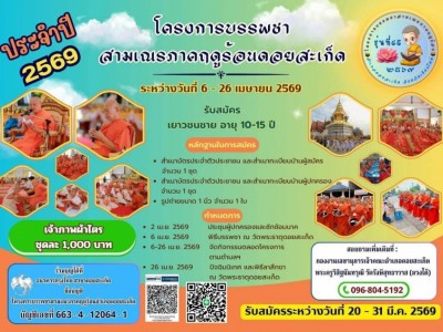 โครงการบรรพชาสามเณรภาคฤดูร้อนดอยสะเก็ด ประจำปี 2569 ระหว่างวันที่ 6 - 26 เมษายน 2569