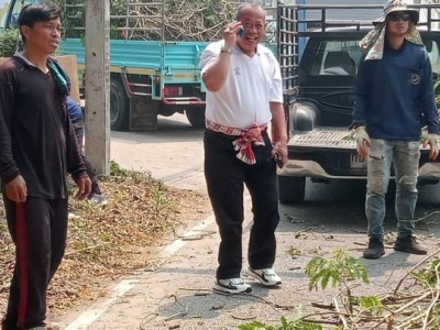 ดำเนินงานตัดกิ่งไม้บริเวณหน้าโรงงานสุขสวัสดิ์ ค้าไม้ (ร่วมกับงานป้องกัน) และมอบหมายงานให้กองช่าง