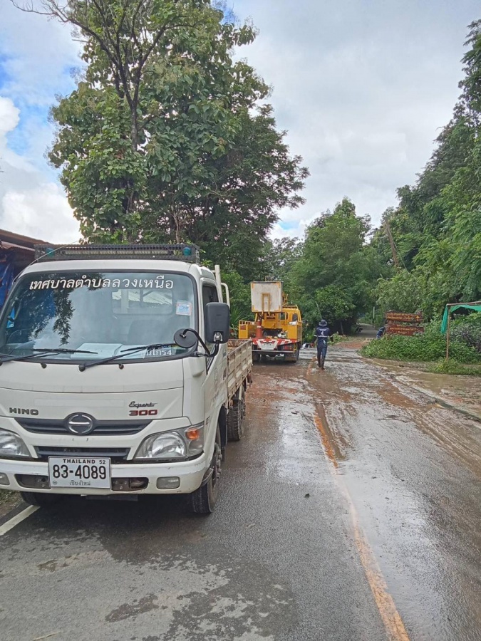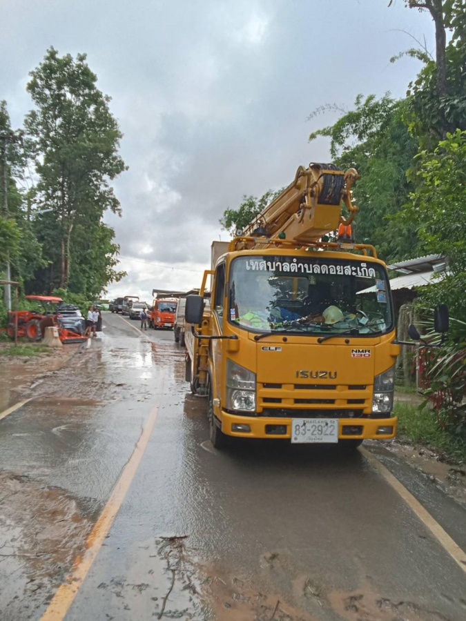! ! วันพุธ ที่ 24 กันยายน2568 !! นายพณานนท์ สุนตาอินทร์ นายกเทศมนตรีตำบลดอยสะเก็ด ได้รับการประสานงานจากนายพิรุฬห์ บุญเย็น นายกเทศมนตรีเทศบาลตำบลลวงเหนือ ประสานงานขอให้เจ้าหน้าที่กองช่าง เทศบาลดอยสะเก็ดลงพื้นที่ช่วยเหลือตัดต้นไม้ใหญ่หักโค่นล้มขวางถนนและล้มทับสายไฟแรงสูงบริเวณทางเข้าประมงเขื่อนแม่กวงอ