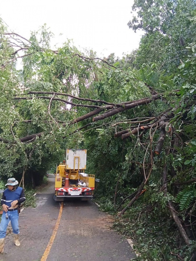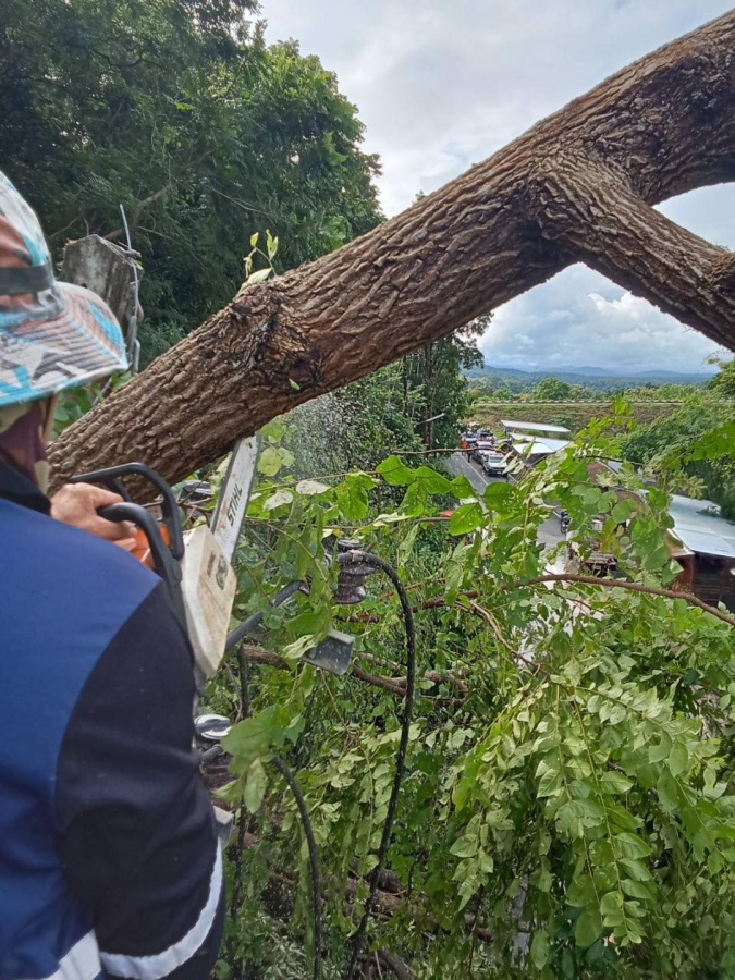 ประสานงานขอให้เจ้าหน้าที่กองช่าง เทศบาลดอยสะเก็ดลงพื้นที่ช่วยเหลือตัดต้นไม้ใหญ่หักโค่นล้มขวางถนนและล้มทับสายไฟแรงสูงบริเวณทางเข้าประมงเขื่อนแม่กวงอุดมธาราโดยมีหน่วยงานร่วมกันบูรณาการด้วยกันดังนี้