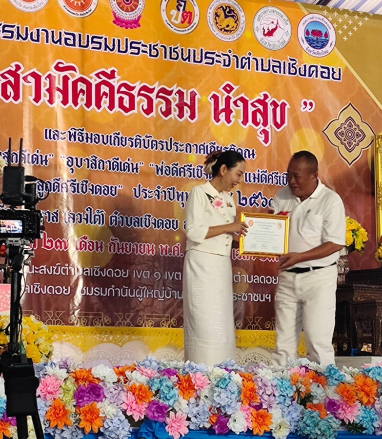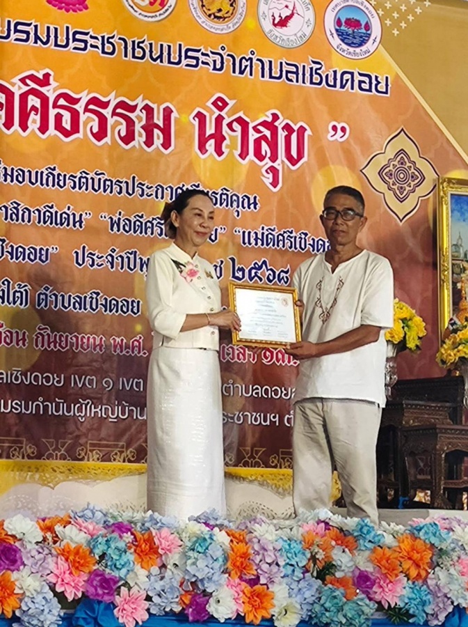 นายพณานนท์ สุนตาอินทร์ นายกเทศมนตรีเทศบาลดอยสะเก็ด ได้รับมอบโลห์ บุคคลต้นแบบ (คนดีศรีเชิงดอย) ประจำปี 2568