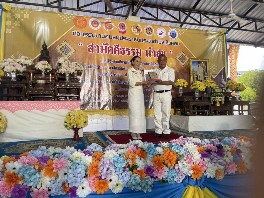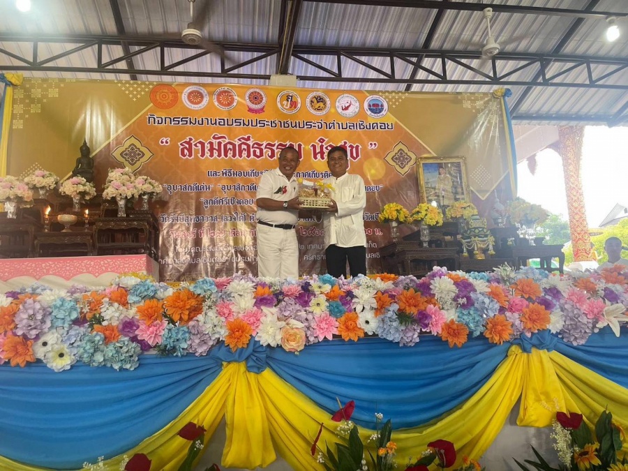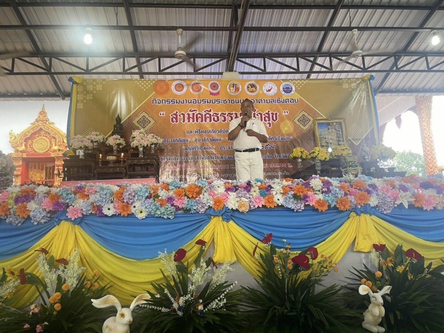 นายพณานนท์ สุนตาอินทร์ นายกเทศมนตรีเทศบาลดอยสะเก็ดพร้อมคณะผู้บริหาร และสมาชิกสภาเทศบาลดอยสะเก็ดเขต 1 และเขต 2 ปลัดเทศบาล. รองปลัดเทศบาล ผอ.กองสาธารณสุข ผอ.กองช่าง และเจ้าหน้าที่เข้าร่วมกิจกรรม งานอบรมประชาชนประจำตำบลเชิงดอย(อปต)คณะสงฆ์ตำบลเชิงดอยร่วมกับ เทศบาลตำบลดอยสะเก็ด เทศบาลตำบลเชิงดอย ชมรมกำนันผู้ใหญ่บ้านตำบลเชิงดอย ประชาชนตำบลเชิงดอย ณ.วัดรังษีสุทธาวาส (ลวงใต้) ประจำปี 2568 และรับฟังการบรรยายธรรมในหัวข้อ"สามัคคีธรรม นำสุข" และพิธีมอบเกียรติบัตร อุบาสกดีเด่น- อุบาสิกาดีเด่น-พ่อดีเด่น-แม่ดีเด่น-ลูกดีเด่น ประจำปี 2568 และในปีนี้