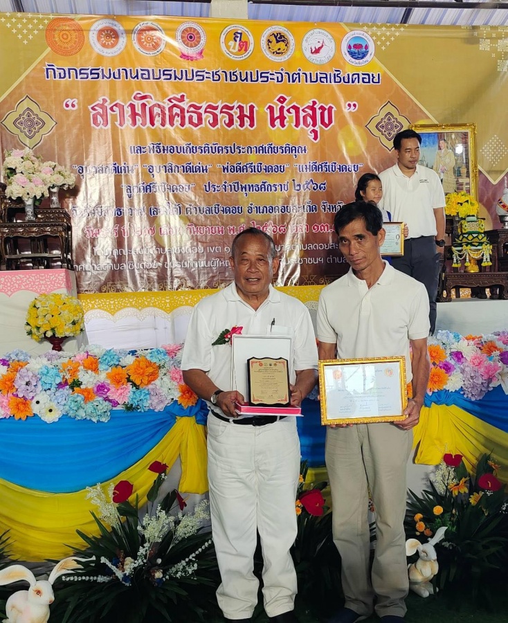 และรับมอยเกียรติบัตรประกาศเกียรติคุณ ผู้สนับสนุนกิจกรรมอบรมประชาชน ประจำปีงบประมาณ 2568ให้กับ
