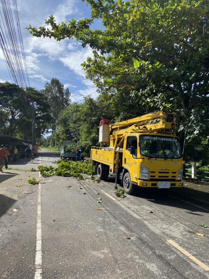 -ทำการตัดแต่งกิ่งต้นไม้บริเวณถนนสายคันคลองชลประทานบ้านบนเพื่อความปลอดภัยและความสวยงามตามคำร้องของสท.เรวัตร  อาจหาญ