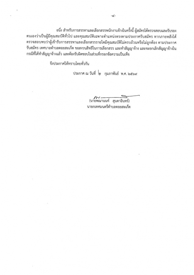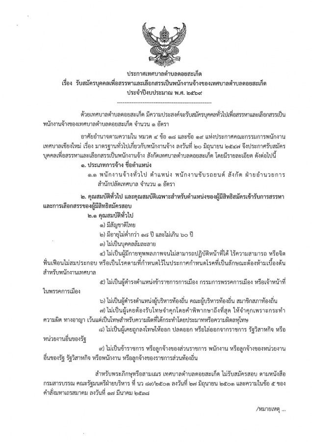 ????????ประกาศจากเทศบาลตำบลดอยสะเก็ด???????? รับสมัครบุคคลเพื่อสรรหาและเลือกสรรเป็นพนักงานจ้างของเทศบาลตำบลดอยสะเก็ด ประจำปีงบประมาณ พ.ศ.2569 ตั้งเเต่วันที่ 9 -17 กุมภาพันธ์ 2569 ในวันและเวลาราชการ