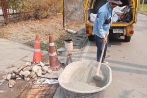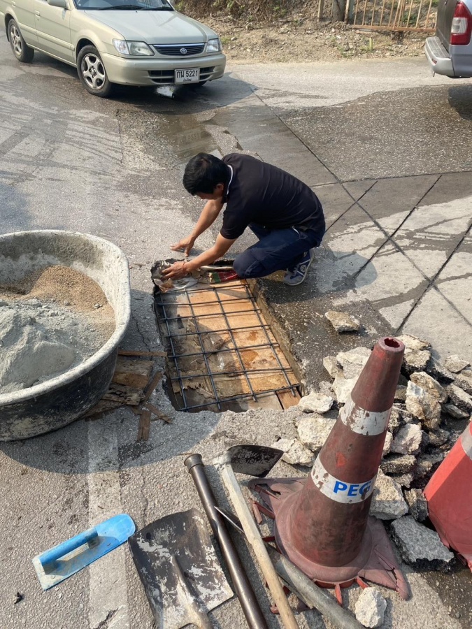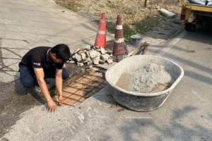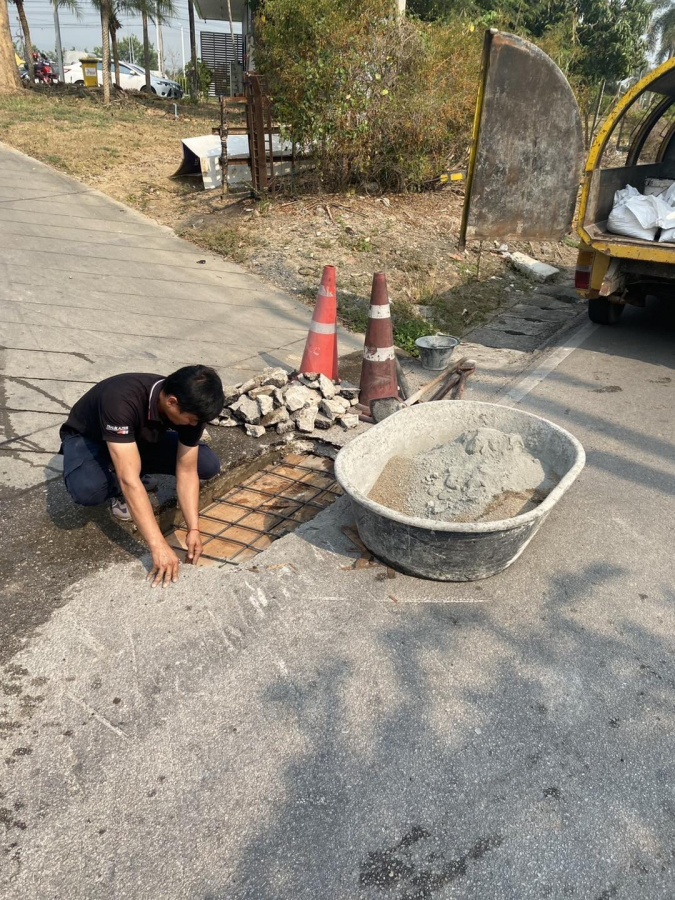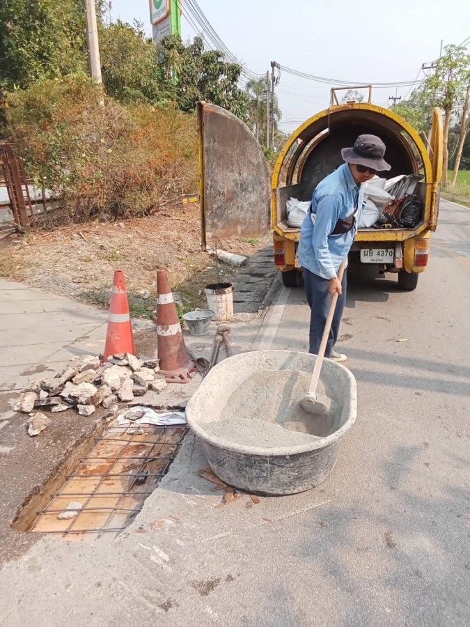 2.กองช่าง ซ่อมแซมฝารางระบายน้ำ บริเวณทางเข้าปั๊มน้ำมันบางจากดอยสะเก็ด