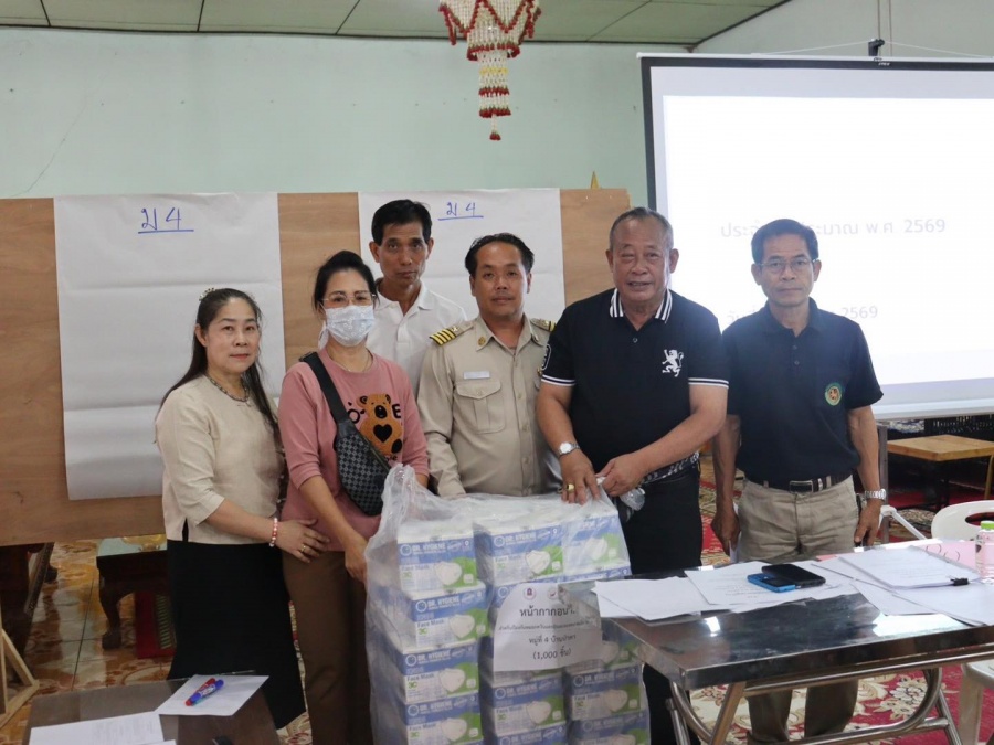 เพื่อนำหน้ากากไปแจกจ่ายให้กับประชาชนในพื้นที่ ในการประชุมประชาคมระดับหมู่บ้าน