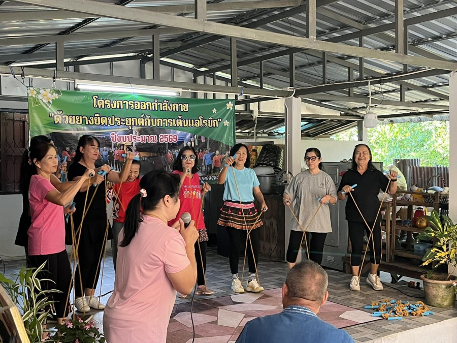 โครงการออกกำลังกายด้วยยางยืดประยุกต์กับการเต้นแอโรบิก โดยกลุ่มรำวงย้อนยุค หมู่ที่ 3 บ้านเชิงดอย ซึ่งได้รับการสนับสนุนงบประมาณจาก กองทุนหลักประกันสุขภาพเทศบาลตำบลดอยสะเก็ด ประจำปีงบประมาณ พ.ศ. 2569