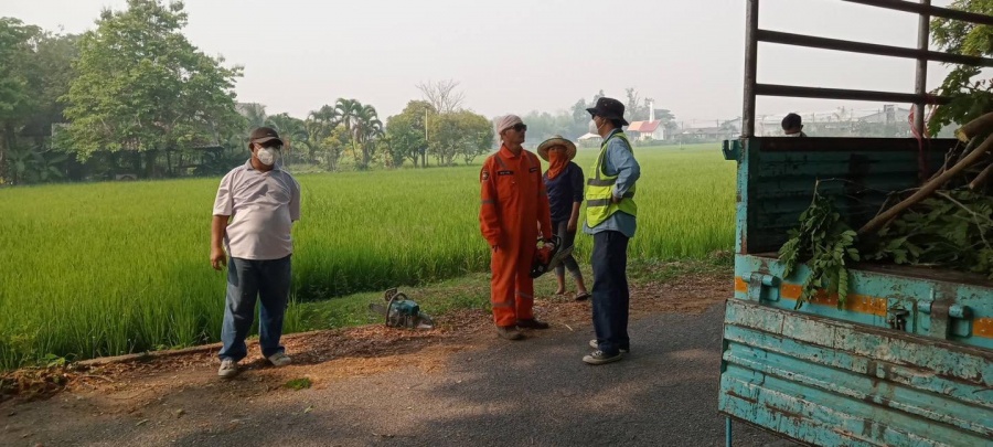 ดำเนินงานตัดกิ่งไม้บริเวณหน้าโรงงานสุขสวัสดิ์ ค้าไม้ (ร่วมกับงานป้องกัน) และมอบหมายงานให้กองช่าง