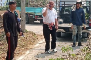 นายพณานนท์ สุนตาอินทร์ นายกเทศมนตรีตำบลดอยสะเก็ด พร้อมด้วยคณะผู้บริหาร กำกับดูแลการดำเนินงานตัดกิ่งไม้บริเวณหน้าโรงงานสุขสวัสดิ์ ค้าไม้ (ร่วมกับงานป้องกัน) และมอบหมายงานให้กองช่าง ดังนี้